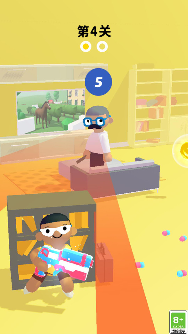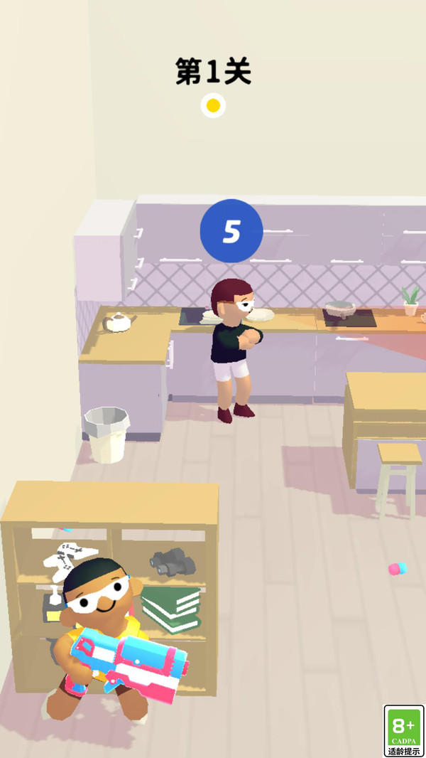 2、每个关卡场景设定不同,敌人数量也不同,利用武器来整蛊他们。