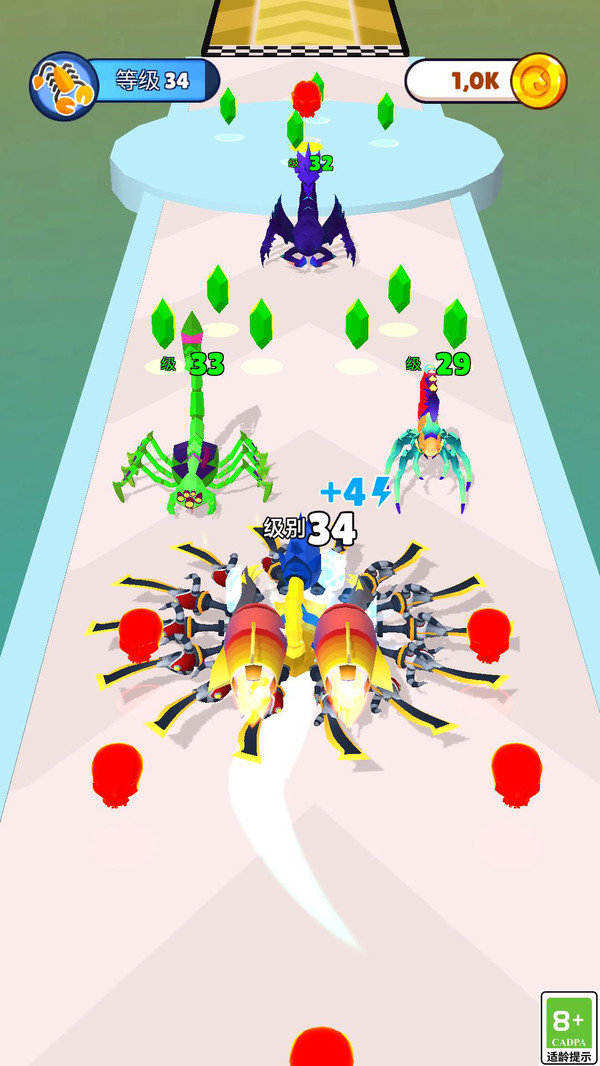 2、在关卡终点,等待指针到达终点,点击可以让你的蝎子发出最强进攻,获得更高分数。