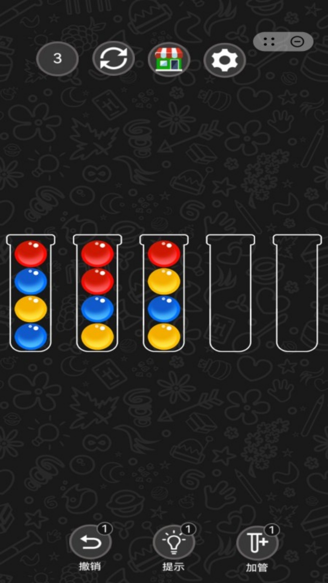2、继续完成下一关,试管和球球的数量都有增加;