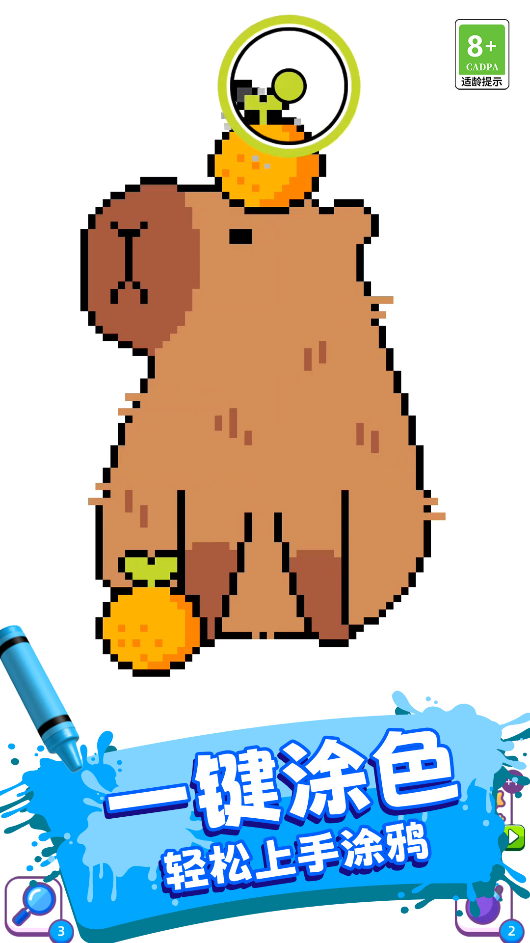 3、能够选择不同的画笔,在游戏当中进行填色大闯关。