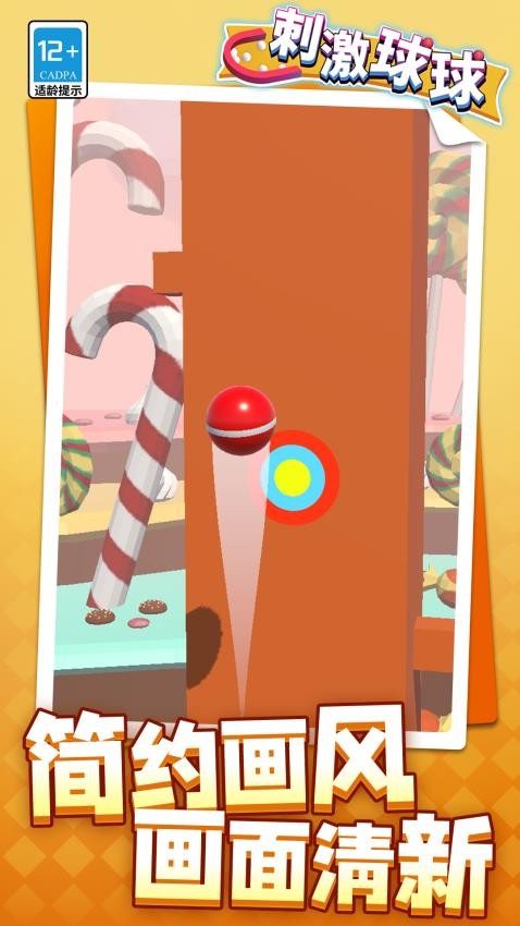 3、球球在跳跃过程,点击屏幕插在靶子上得分。