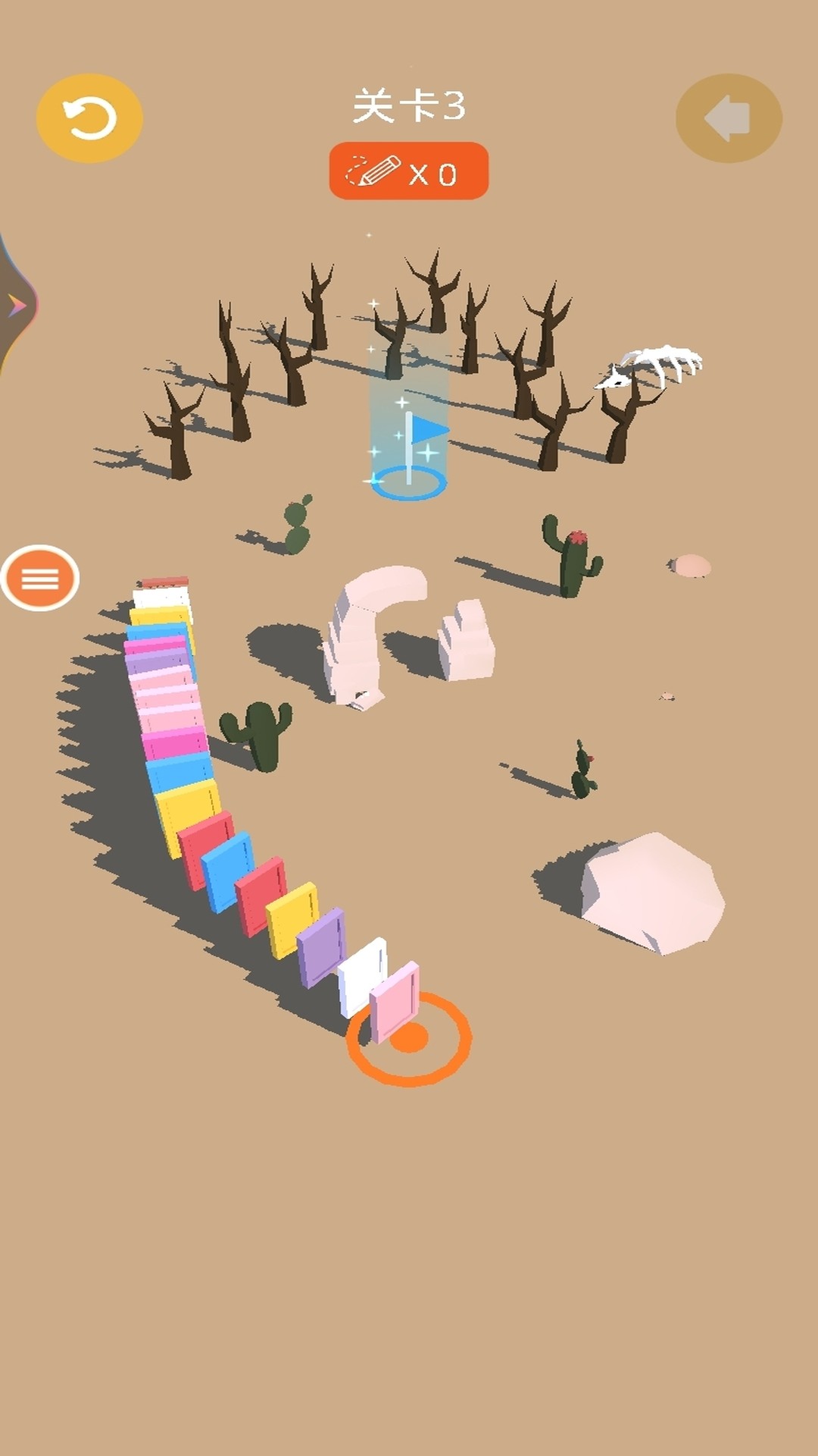 2、每个关卡的场景设定不同,只需要从开始处连接到旗帜,顺利推倒即可。