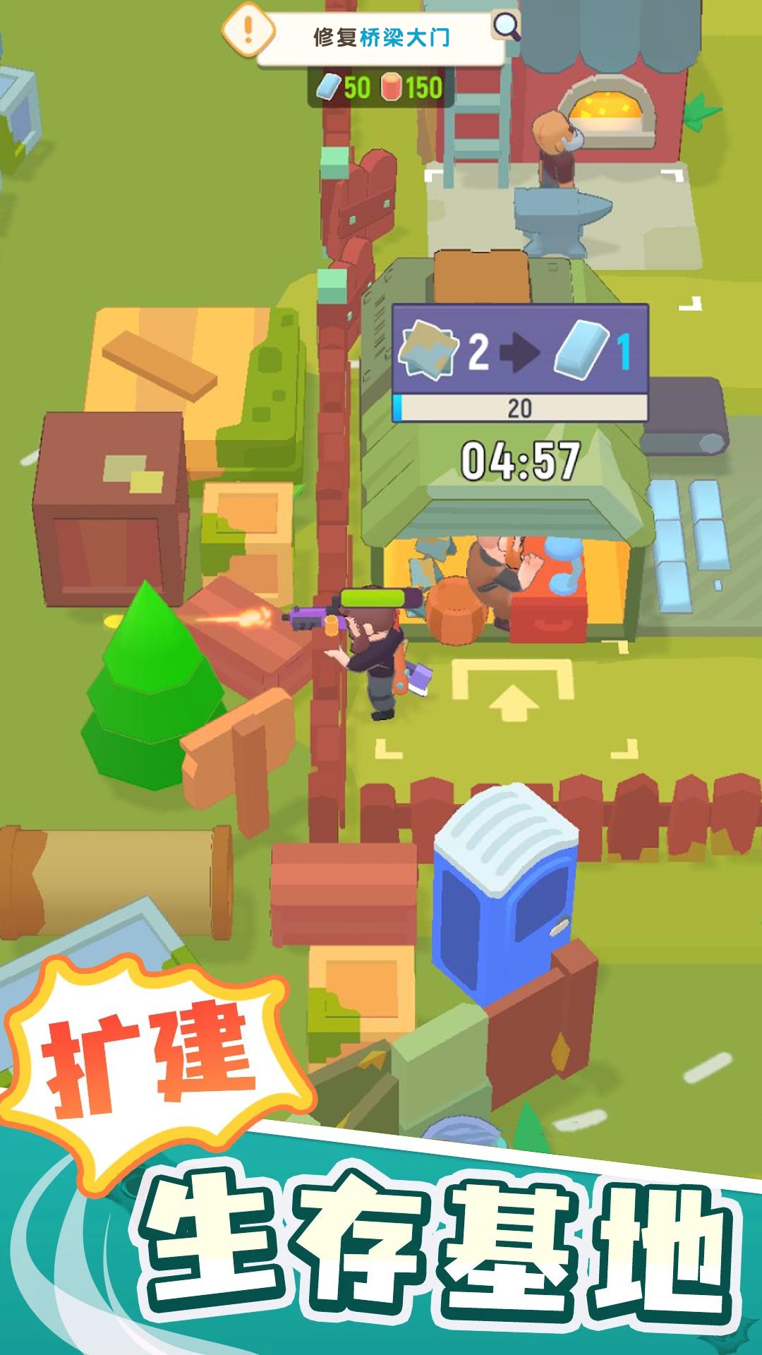 3、清理指定的区域,收集大量的木材,建造生存基地,抵御僵尸的攻击。