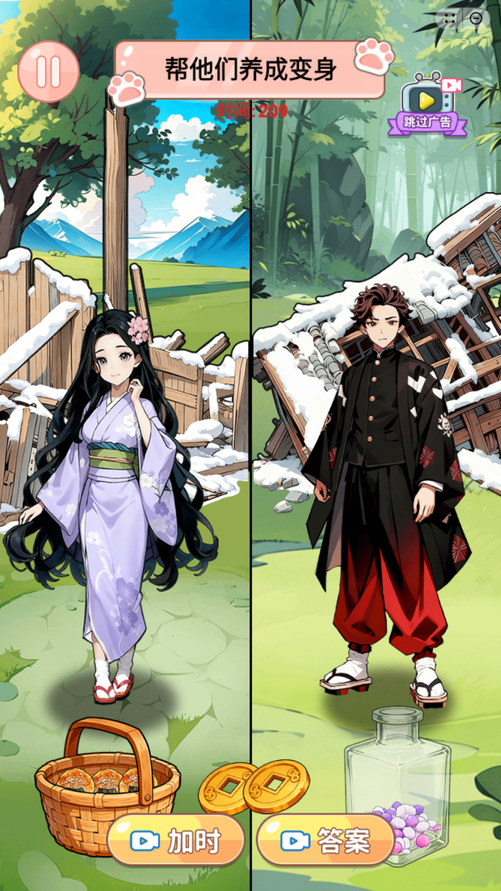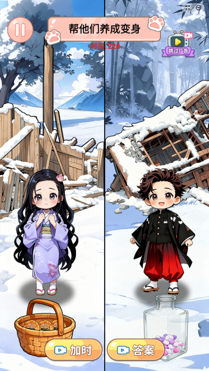 3、玩家需在时间内完成指定变身次数,超时未完成时,角色会委屈落泪,但可消耗金币复活并重置时间。