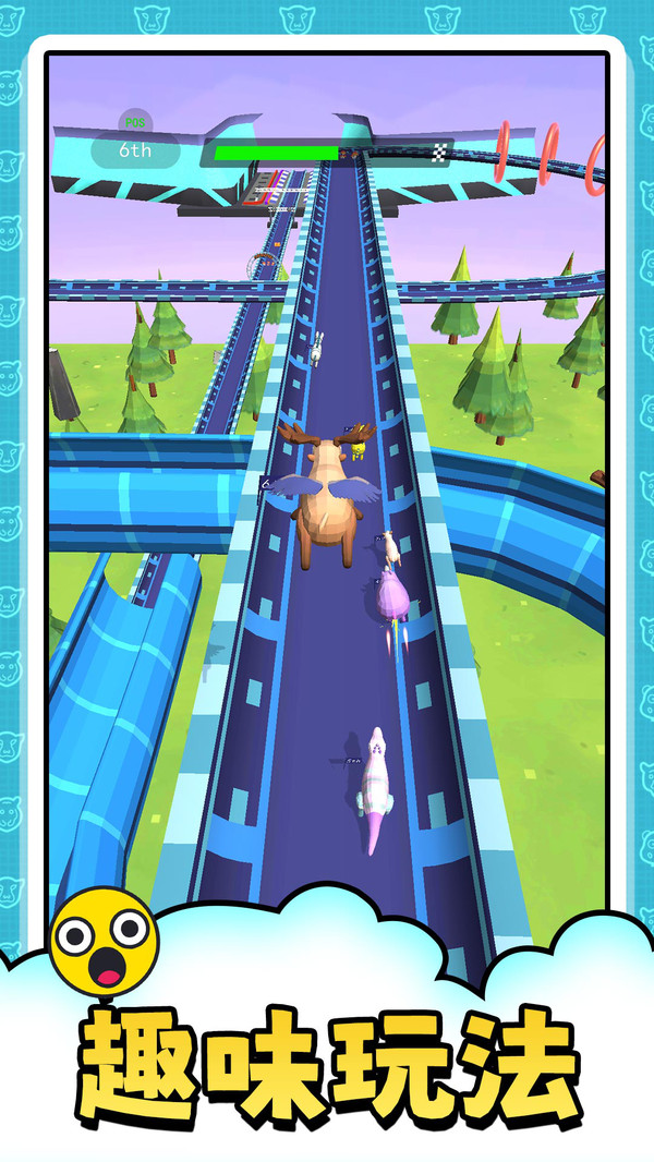 1、核心围绕独特的空中赛跑玩法展开,动物角色将在离地飞驰的梦幻赛道上展开竞速,突破传统跑酷形式。