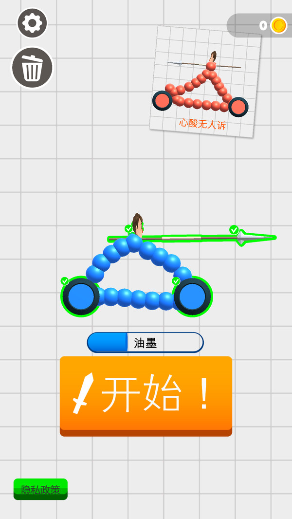 1、玩家通过点击画线,来绘制你的战车基础结构,参与关卡对战。