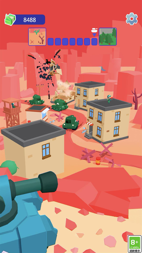 2、瞄准敌人坦克后,松开手即可射击,在有限子弹下击败全部敌人过关。