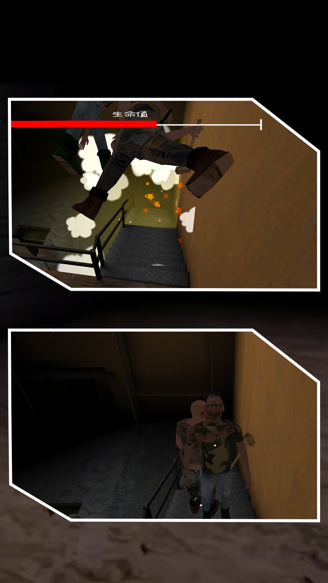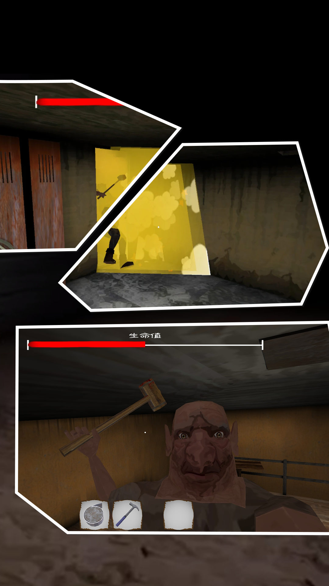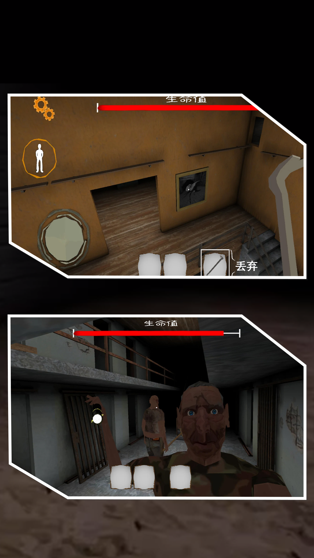 3、昏暗灯光在墙壁上摇曳不定,投下诡异影子,配合突然出现的惊悚画面,给玩家带来强烈心理冲击。