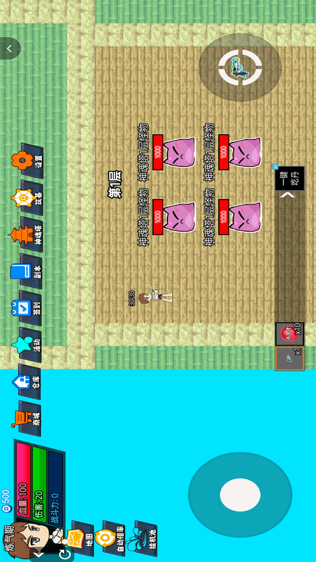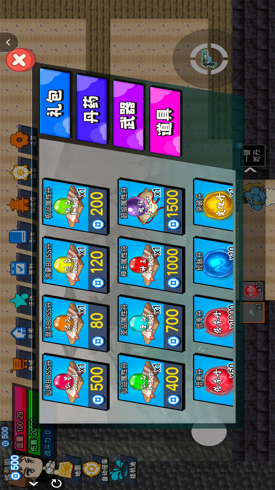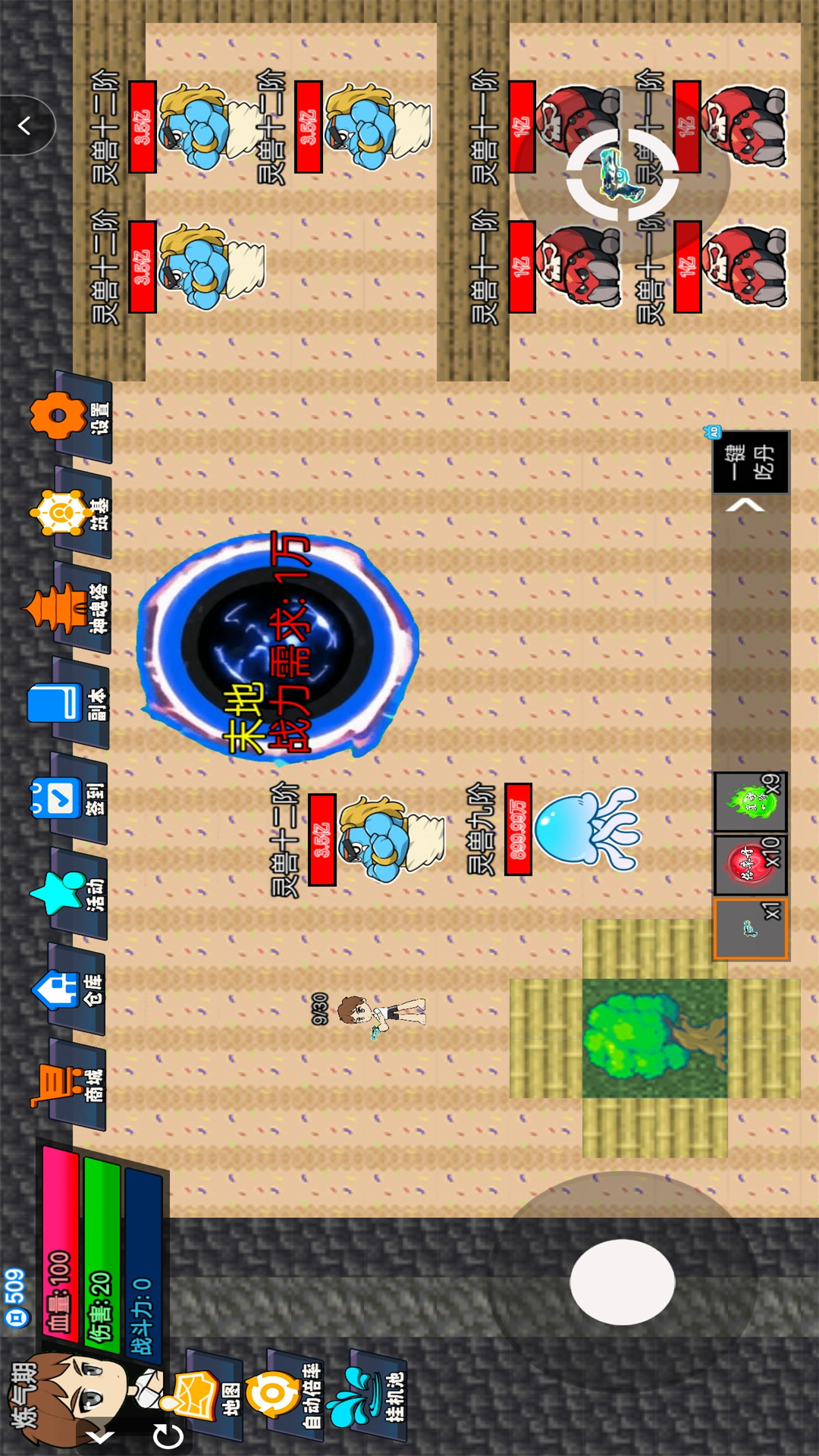 2、通过击败地图中的灵兽获取金币与丹药资源,金币用于购置强力武器提升战力,丹药用于增进修为境界;