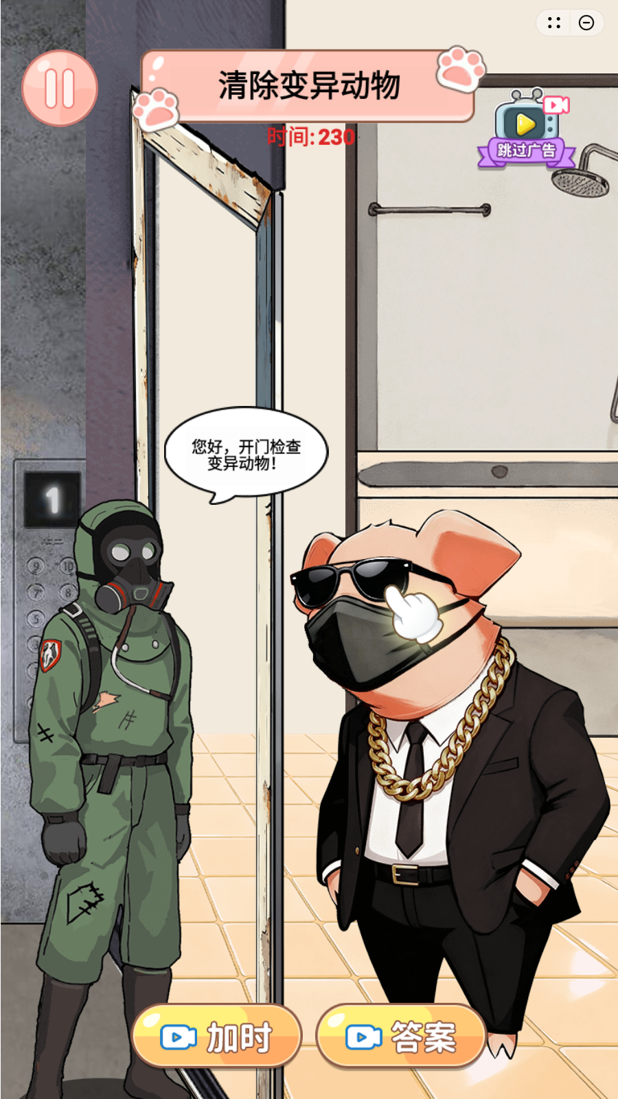 脑洞我最秀是一款以清除变异动物为核心的剧情向解谜冒险游戏。在这个世界观突然错乱的都市里,日常物品与动物产生了荒谬的融合变异,你的核心任务并非武力对抗,而是运用敏锐的观察力找出场景中所有“不合理”的逻辑漏洞。每一个被发现的破绽都将削弱变异体的力量,从而让你能成功清除它们,推进剧情。游戏巧妙地将无厘头搞笑与烧脑解谜结合,挑战着玩家固有认知的边界。每一次闯关都是一次对常识的颠覆,你需要抛开现实逻辑,尽情拥抱那些荒诞却有趣的设定,在令人捧腹的剧情中揭开世界异变的终极谜底。