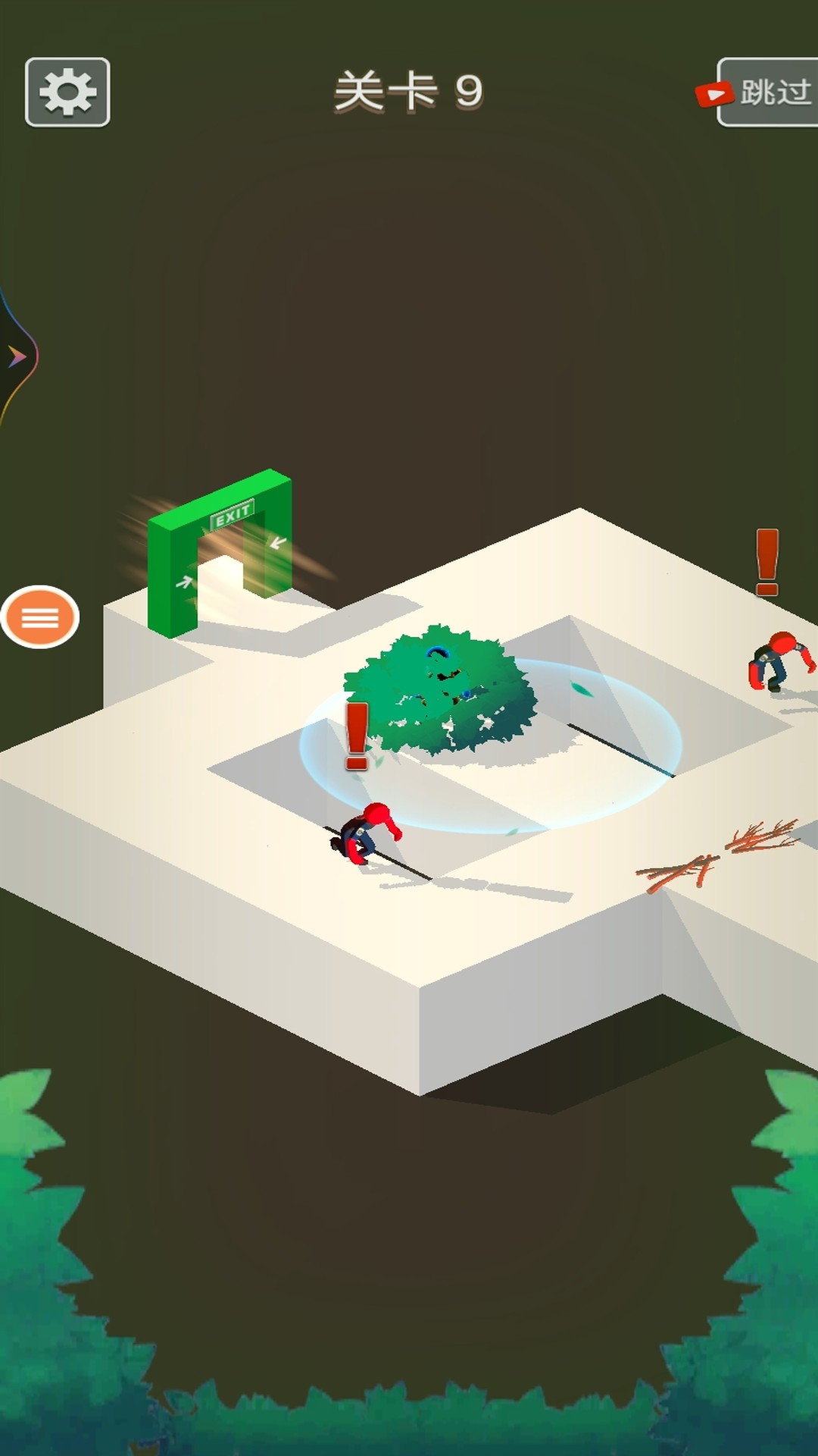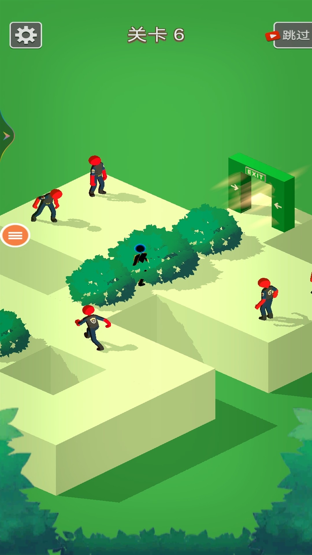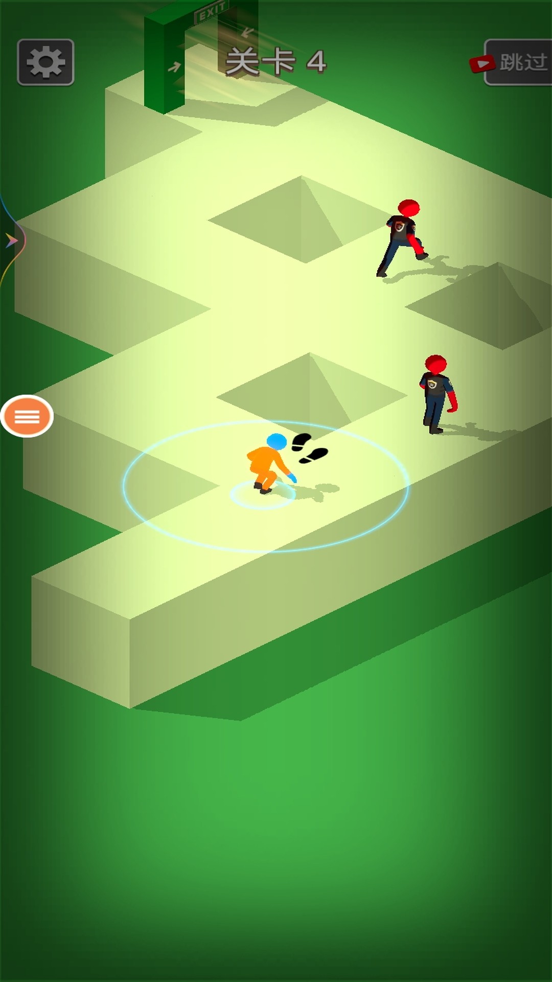 3、游戏难度逐步的提升,巡逻的人越来越多,为了逃离这里,小心的移动。