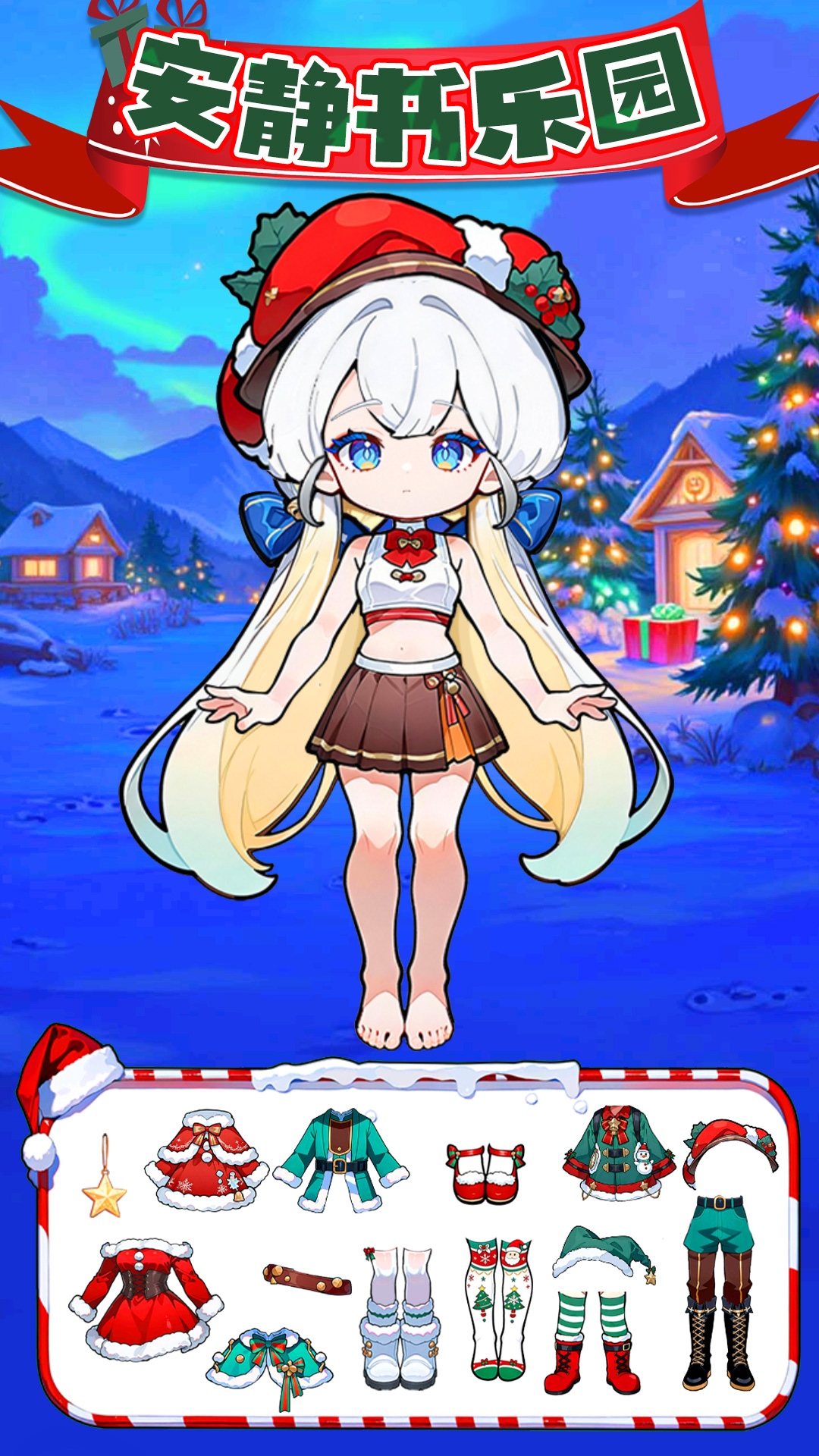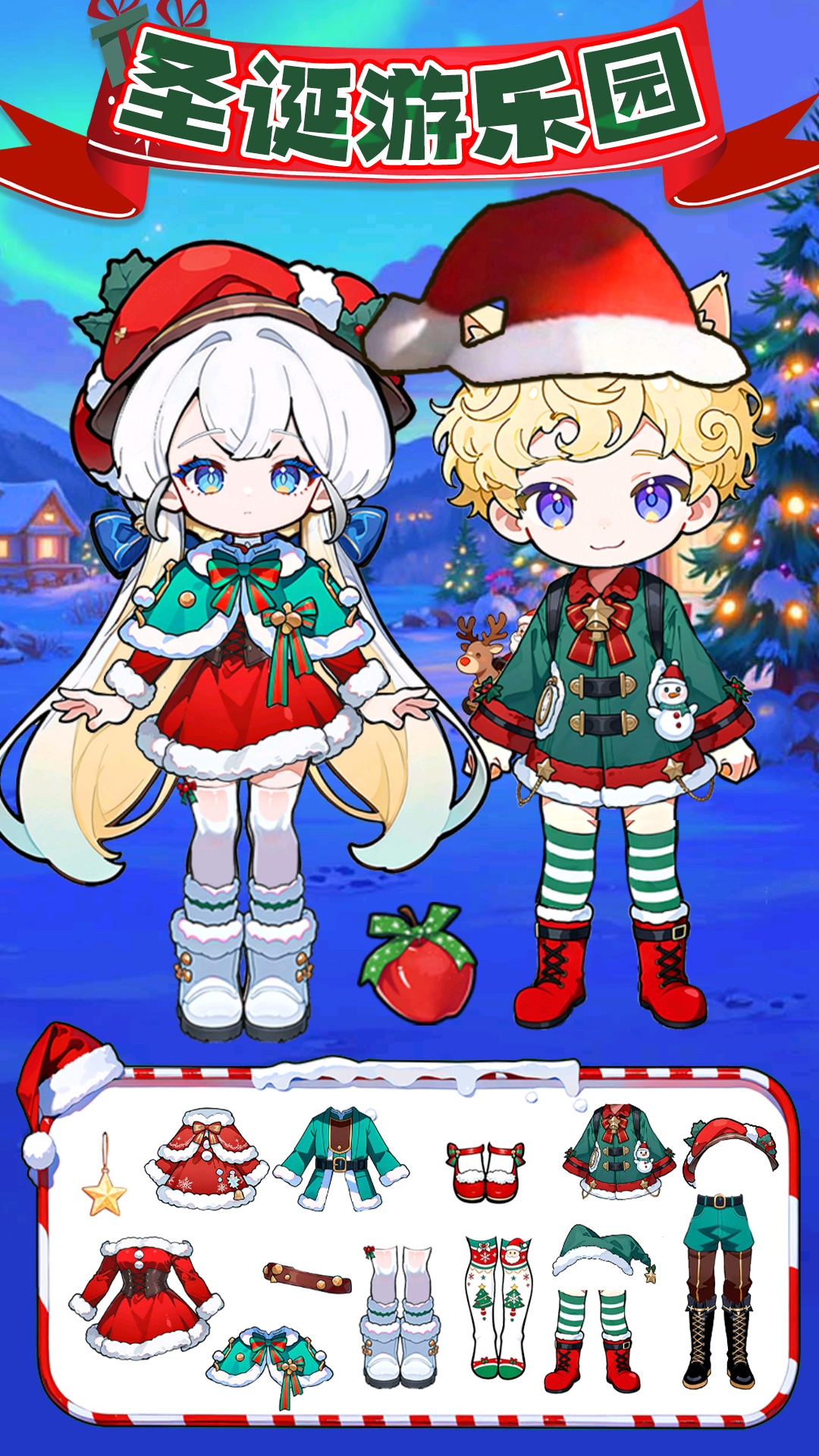 2、换装界面可能以雪地或圣诞派对为背景,角色服饰则融入麋鹿、雪人等图案,增强视觉吸引力;
