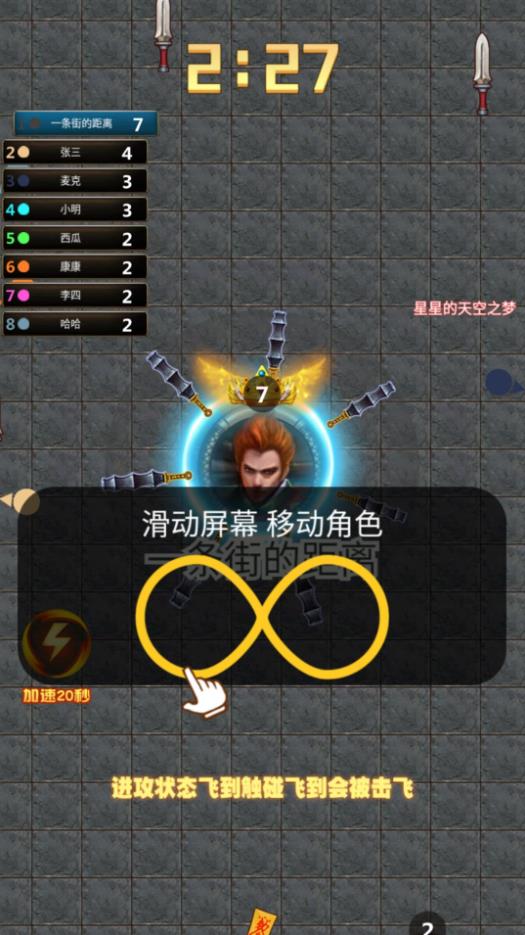 进化之剑是一款不断旋转飞刀的生存游戏,在竞技场当中,和其他选手一起参与其中,不断选择自己的武器,收集周围的道具,拥有的数量越多,那么你就越强大,同时要想办法消灭你的对手,当只剩下你一个人的时候,就算是取得最后的胜利,充分运用自己灵活的走位,躲避各种攻击,找到机会以后,发动致命一击,努力生存到最后,快来称霸这里吧!