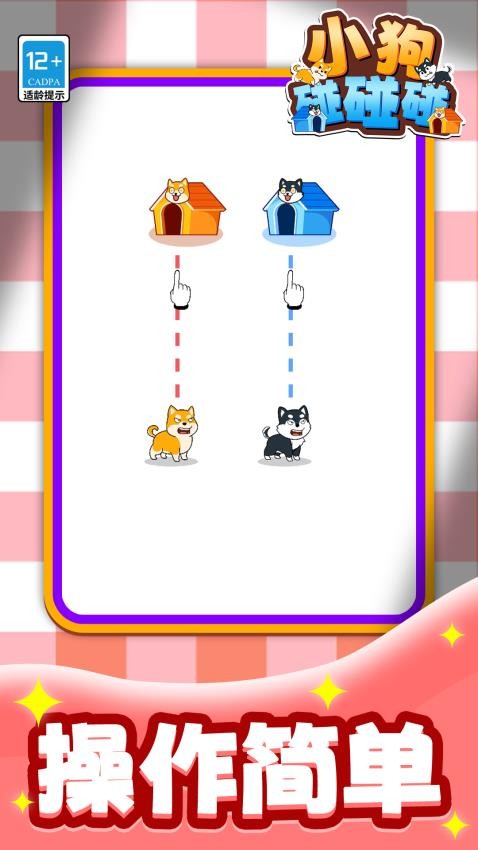 小狗碰碰碰游戏是一款考验个人智慧的画线闯关游戏,轻松触碰滑动屏幕进行连接,即可满足所有目标要求,只需要保证狗狗顺利回到自己的房屋即可闯关,触发隐藏事件可额外获得星星,解锁新地图与装饰物品,无论你是想短暂放松,还是陪伴家人共享温馨时刻,只需滑动指尖,就能为狗狗铺就一条回家的幸福之路。