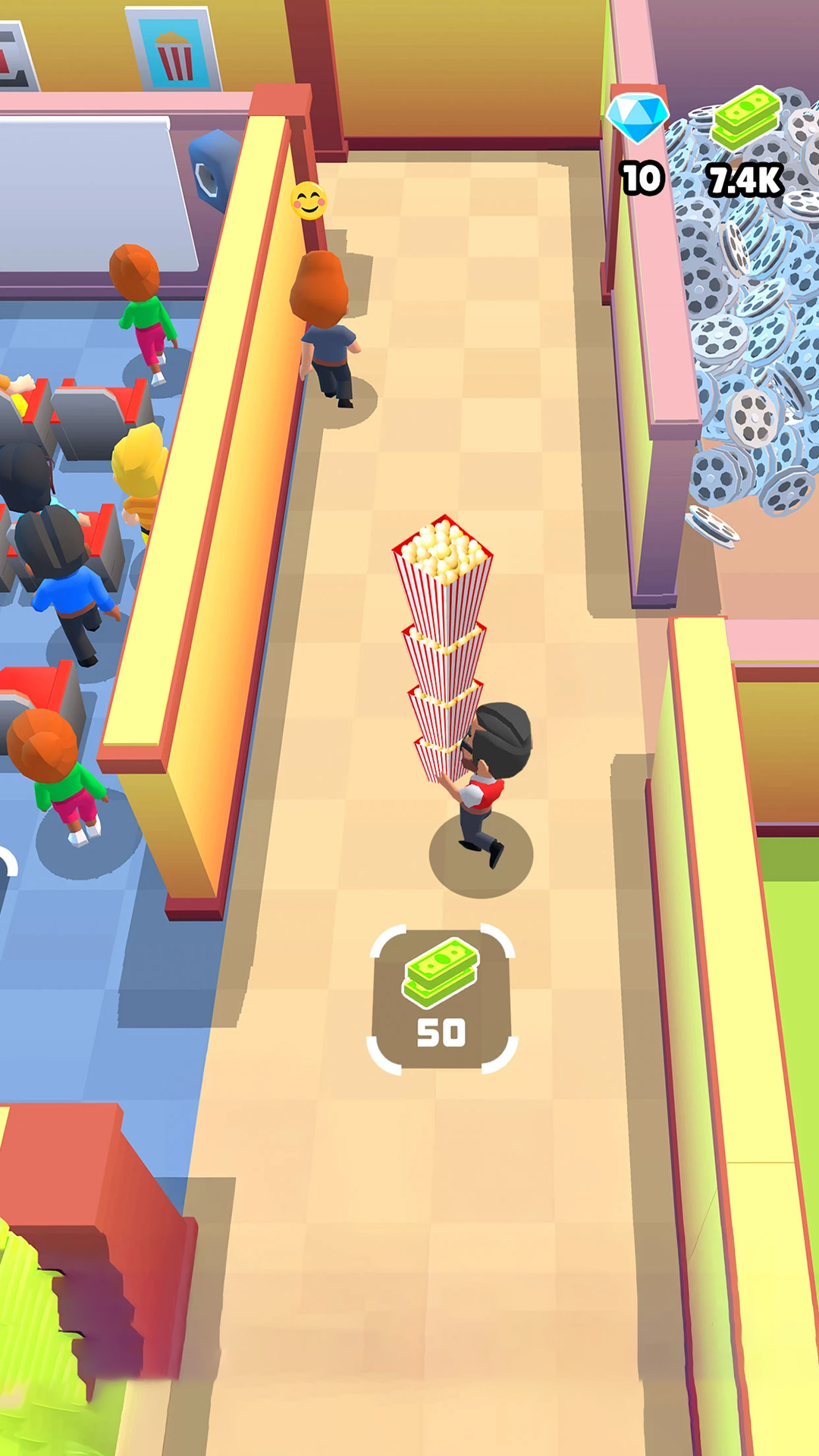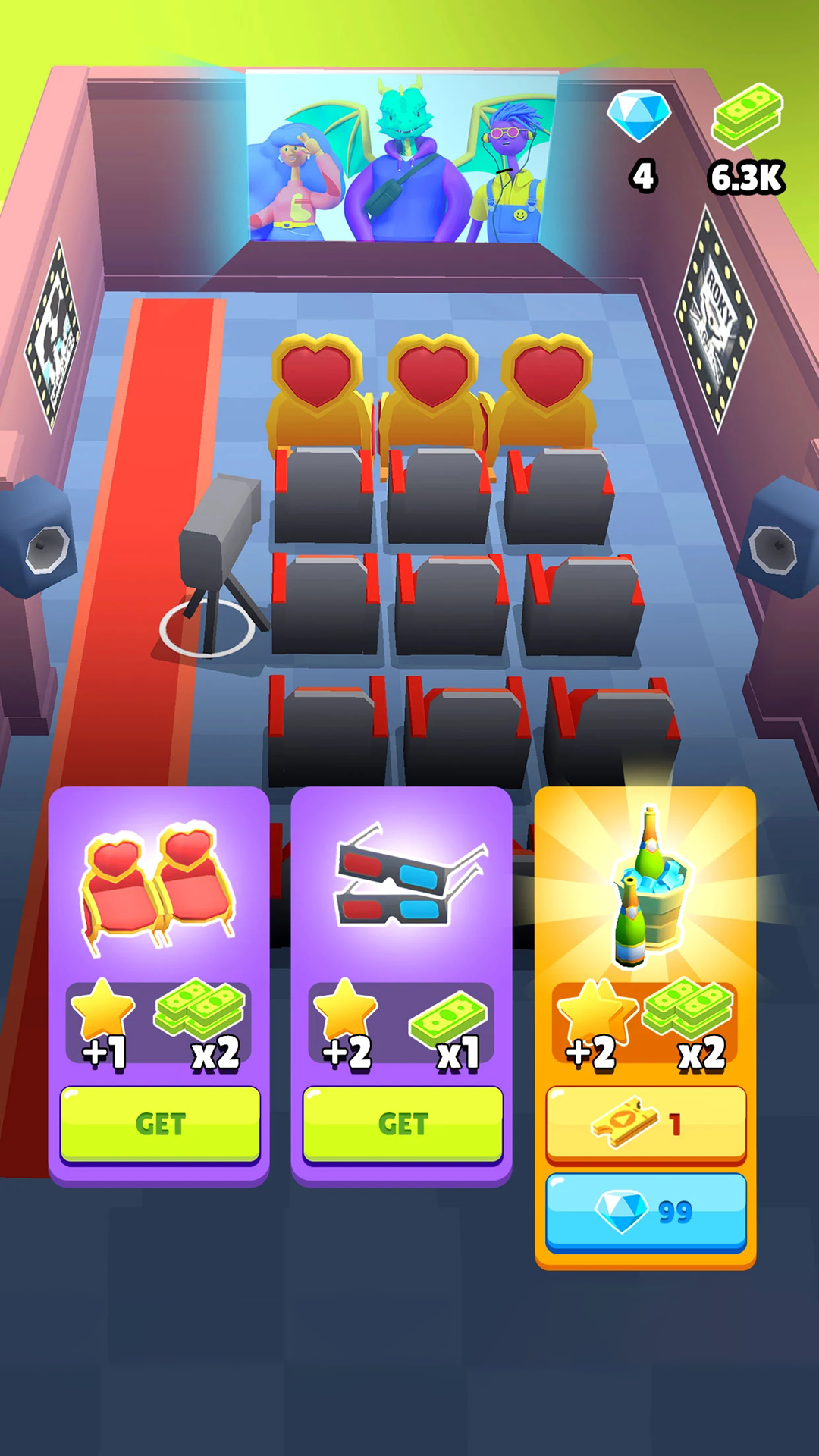 4、解锁售票员,提高工作的效率,继续的播放影片,赚取丰富的金币,解锁新的影厅。