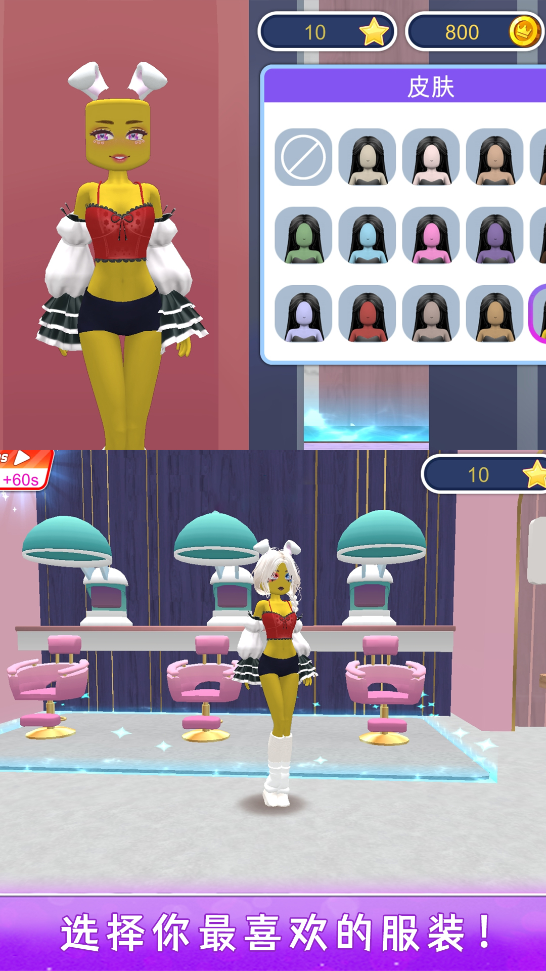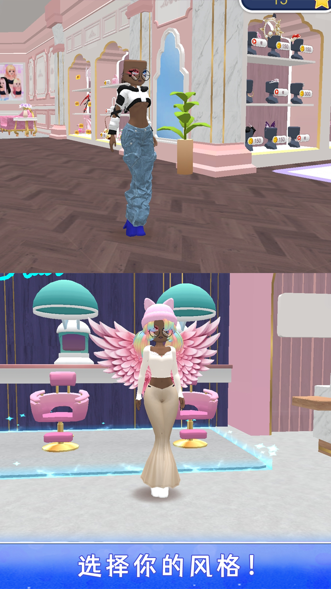 2、梦幻般的游戏界面与悠扬的背景音乐,营造出轻松愉悦的创作氛围,让你在享受时尚的同时,也能感受到心灵的宁静与满足。