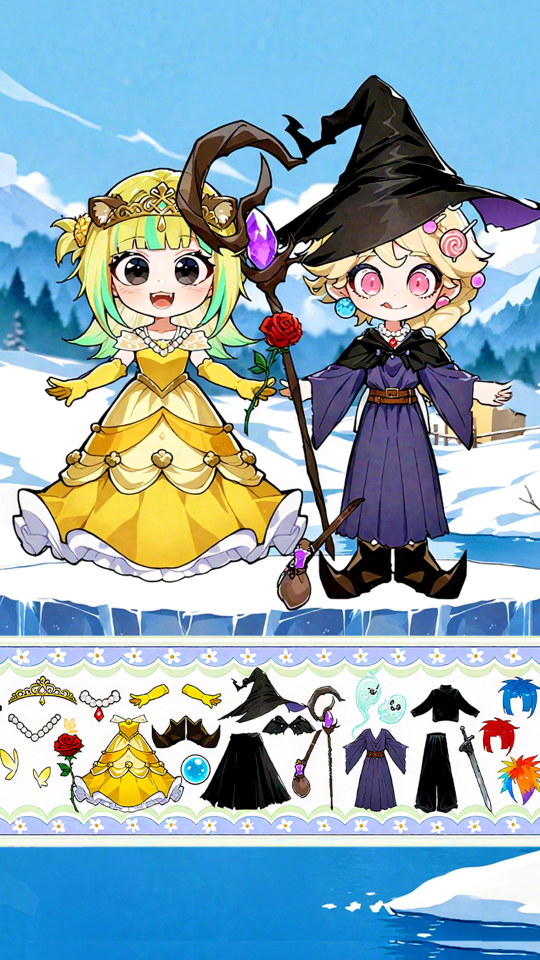 1、采用夸张的线条、饱满的色彩与萌系表情设计,角色形象可爱生动,场景充满动漫奇幻色彩;