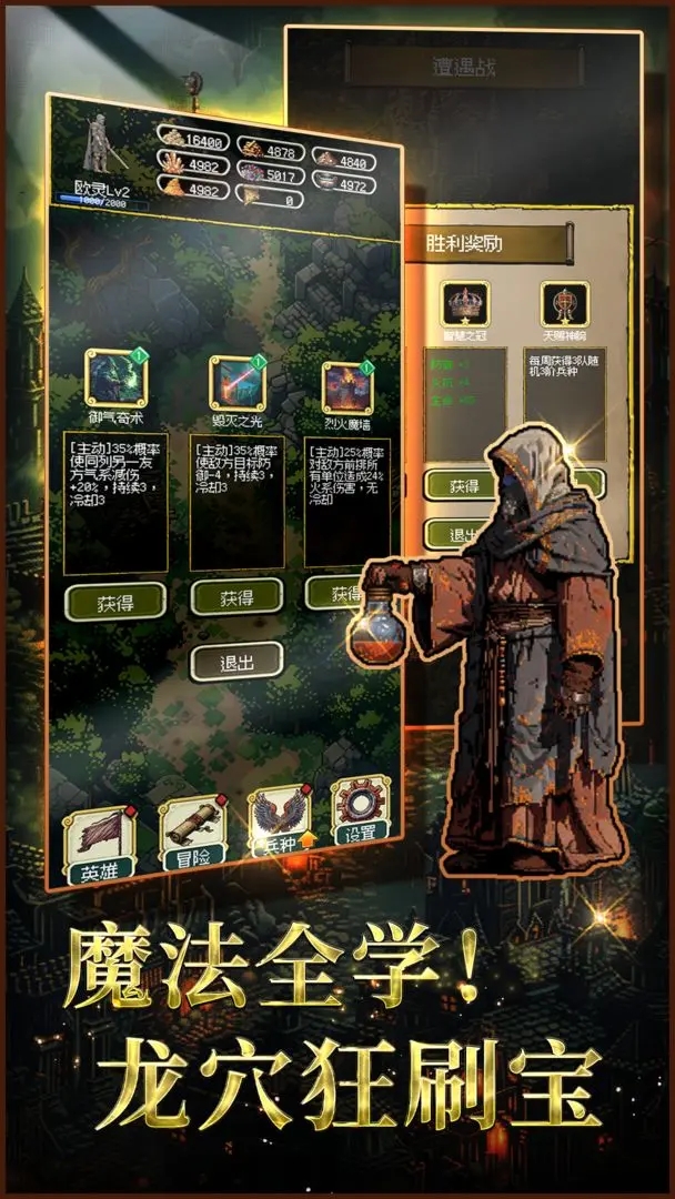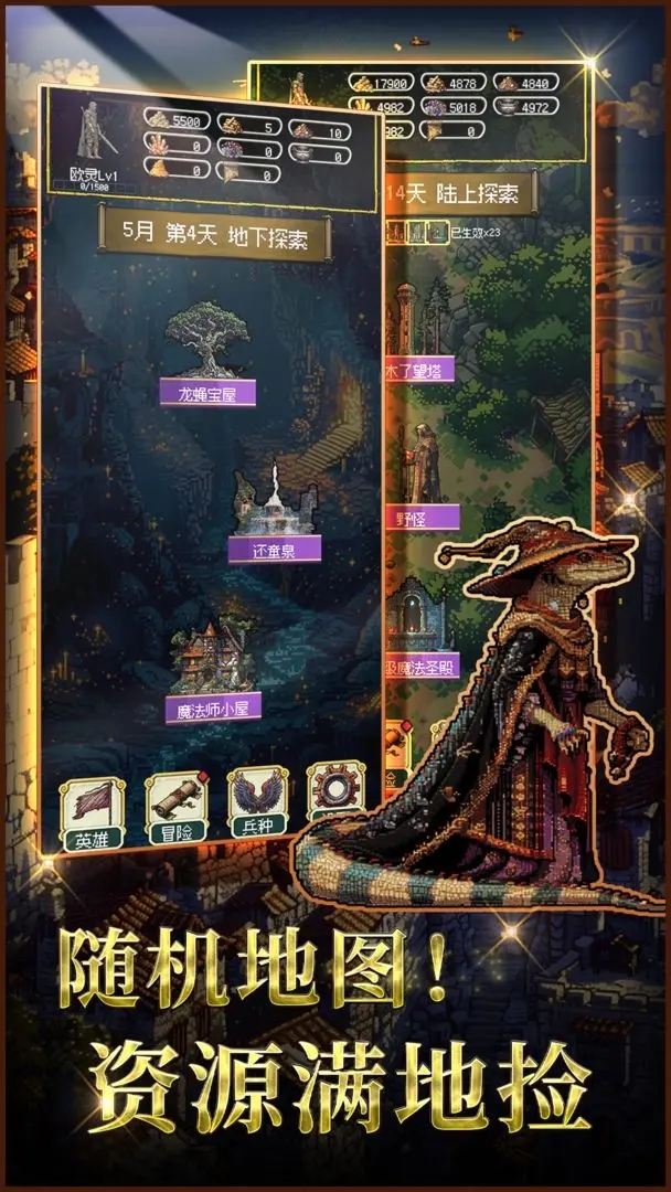 3、每日自动生成英雄经验,打破等级上限,可在任意两地建立瞬时传送门,每天可重roll一次随机事件结果。