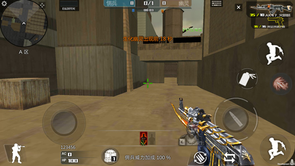 3、通过滑动左侧摇杆来操控角色移动,右侧的按键来进行射击,更换武器,跳跃等。