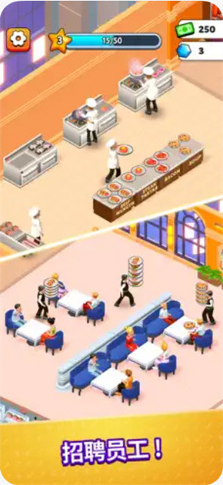 3、需要招募厨师与服务员,训练与升级提升团队效率;