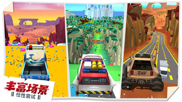 3、多种不同的场景关卡,包括了城市、山地等地图,每个关卡都有全新刺激体验,障碍随机生成;