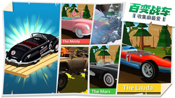 1、提供上百种风格各异的精美车模供玩家解锁和收集,不同车型拥有不同属性和技能;