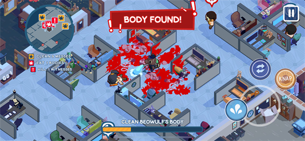 3、清扫过程中要注意避开其他员工,一旦被发现真实身份,角色会失控并对其发起攻击