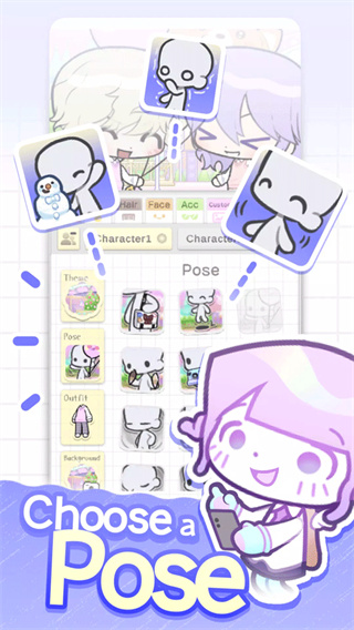 《波卡小伙伴》是一款以二次元风格为核心的休闲捏脸装扮手游,玩家可以创建两个可爱的卡通角色,通过丰富的主题模板、服装配饰、妆容发型来自由定制角色形象,还可以调整姿势动作、添加屏幕特效和装饰边框,最终将作品保存为动画或高分辨率的图片,在轻松愉快的创作过程中享受个性化角色设计的乐趣。