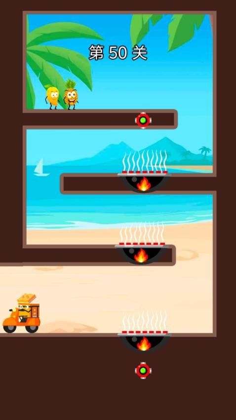 3、玩家只需要让水果角色安全抵达底部区域坐车,玩家即可闯关成功;