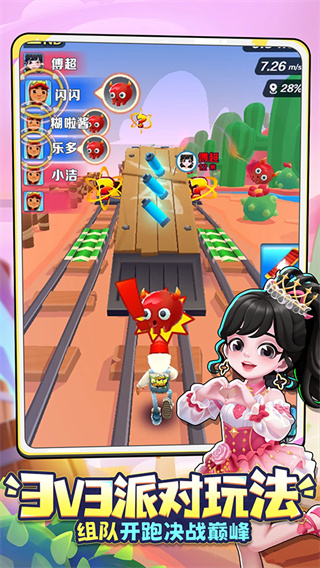 1、可以邀请自己的朋友一起共同跑酷,也可以和家人一起进行游戏,获取更多获金币;