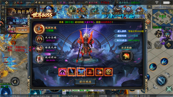 1、地狱红莲的进入等级需要到达3000才可以进入,刷新时间为1小时,