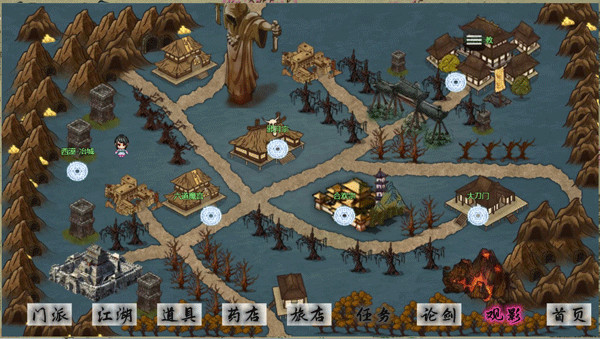 1、开始游戏后去武林盟找到哮天犬后把它带走,在过去万剑宗拜师学习武功;