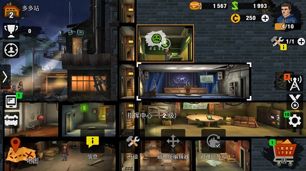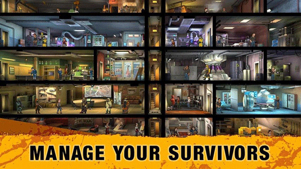 1、幸存者分工合作把房间升级成结实的避难所,建造不同的房间来提高避难所的防御力;