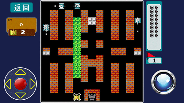 3、玩家会在地图中看到很多坦克,你需要保护你的老鹰不被敌方坦克攻击的同时还要将敌方坦克消灭掉,在界面的左边显示了玩家大的坦克生命系次数,而右边白色框框内是敌方坦克生命次数;