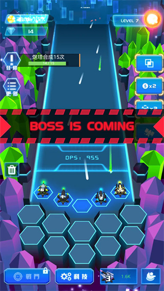 4、升级后可解锁自动合成功能,炮塔也会自动进化成更厉害的防御阵型,并轻松搞定对手。