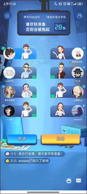 3.快速开局逻辑 进入游戏房间后点击准备,系统将自动分配“平民”或“卧底”身份。记住:每一句描述都是情报,每一个沉默都是嫌疑。在掩护同伴的同时,精准锁定异类。