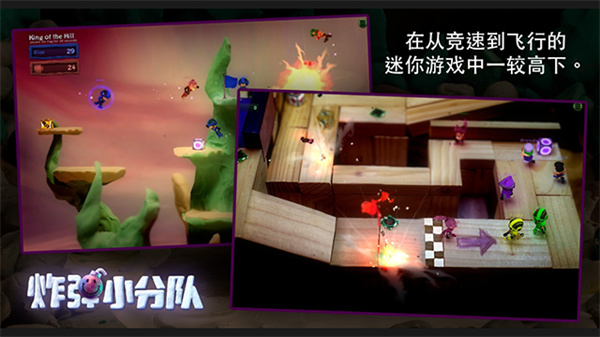 炸弹小分队是一款节奏很欢乐的多人对战游戏,对局通常会在小型竞技平台上进行,开局后需要和其他玩家展开混乱又搞笑的对抗,只要点击按钮把炸弹丢到敌人附近就有机会把对方炸飞,如果看到别人丢过来的炸弹,在爆炸前还能捡起来再扔回去,游戏里还有多种模式,比如:夺旗、足球或团队对战,不同模式玩法也会有变化,地图中有些平台还能连续丢炸弹,让战斗节奏变得更刺,整体画面偏卡通风格,角色动作夸张,加上爆炸效果,玩起来非常热闹,很适合和朋友一起对战。
