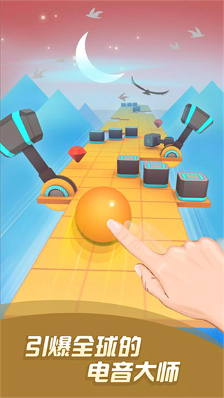 滚动的天空是一款音乐节奏类的游戏,这款充满趣味性和节奏感满满的游戏,过程中充满阻碍,这些陷阱个个都极具想象力,让这场球球的节奏冒险增添了几分色彩,游戏以动感的音乐为核心,通过极其简单的操作,用手按着屏幕左右滑动来规避障碍物,不能够松手,跟随着节奏在场地上滚动整个天空。