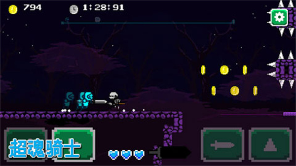 超魂骑士是一款全新趣味的像素冒险类游戏,使用了像素风可以体验到小时候玩过的红白机游戏,操控游戏的角色因为要救村子,所以和女巫寻求力量,变成了一旦睡觉的话灵魂就会出窍,角色需要踏上冒险的旅程来找到自己的灵魂,最后对抗各种魔物获得胜利。