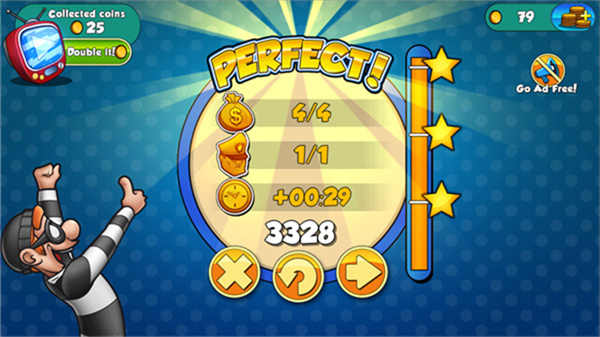 神偷鲍勃2是一款以小偷为主的闯关游戏,玩家需要一名小偷,在不同的屋子中完成任务,一边躲避偏向慢慢观察再行动,一边躲避警卫和监控,一边收集金币和开锁,每关卡的场景设计汇有所不同,让体验感玩久了也不会感觉腻,有时候需要玩家抓准时机通过,看起来简单但其实挺考验耐心和判断,随着关卡推进,难度也会慢慢提高,游戏主题的节奏不快,比较像慢慢观察行动。