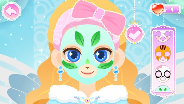 4、然后帮她敷上各种类型的面膜,宝宝可自己选择;