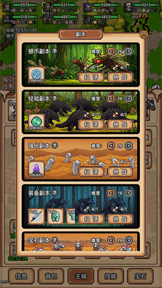 4、升级主要靠经验和银币,通过挂机就能获取,离线挂机收益比在线高1.5倍,建议多利用离线挂机来稳资源;