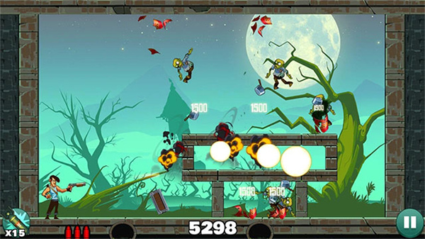 2、子弹数量有限,需要用角度和墙壁反弹来击中僵尸,非常考验策略和判断力;