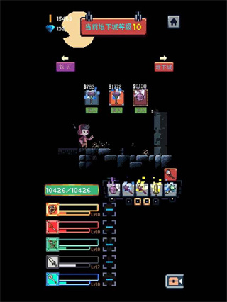 3、通关各个不同的地牢(关卡),里面的宝藏武器等让玩家的能力更升一级;