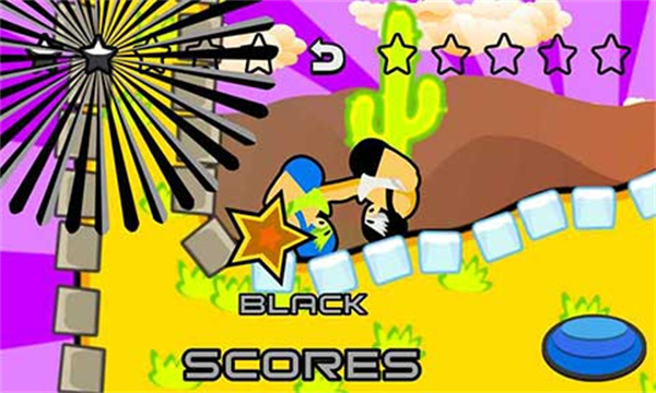 1、进入游戏后两名角色的腿都是曲的,点击攻击按钮的话可以让角色的腿伸直;