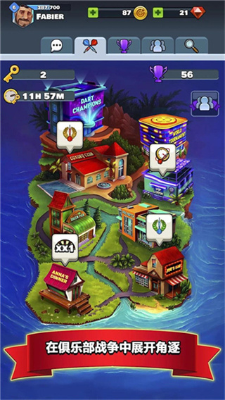 飞镖俱乐部是一款可以和全球玩家比拼飞镖的小竞技游戏还能赢奖励,很多升级和收集系统,可以解锁不同的镖筒,镖杆,镖翼,然后随意组合出喜欢的飞镖让投掷更顺手,随着段位慢慢升高,还能解锁更漂亮的场景和各种限时活动,但赢不赢还是看手感和准头,多练习,多掌握投掷节奏和落点,就能在对战里站稳脚跟,慢慢成长为真正的飞镖高手。