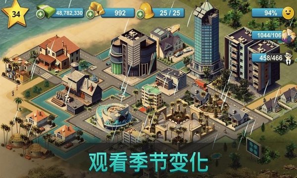 游戏采用细腻的2.5D视角设计,兼顾局部细节与整体城市规模,打造贴近现实的现代都市风格。高楼、道路与交通动态皆清晰可见,营造生动城市景象,让玩家从荒岛逐步打造专属都市,体验从无到有的建设成就感与掌控乐趣。