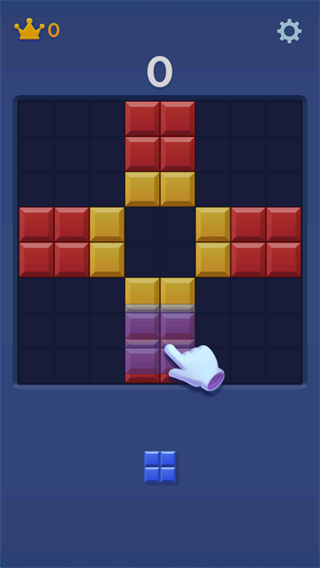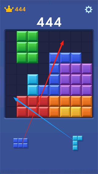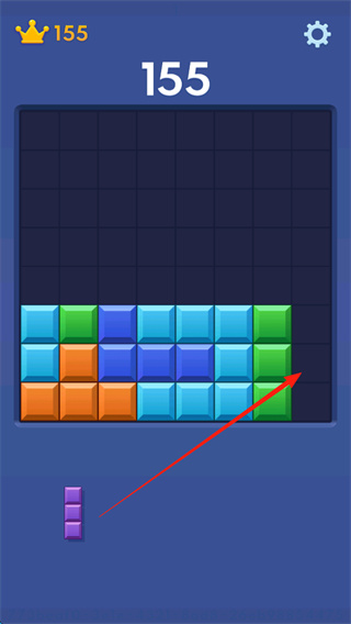 1、将下方的方块放入大方块中的空缺处,填满上下左右的整行列,进行消除;