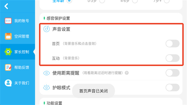7、可以关闭首页的背景音乐和点击音效,以及互动的背景音乐。