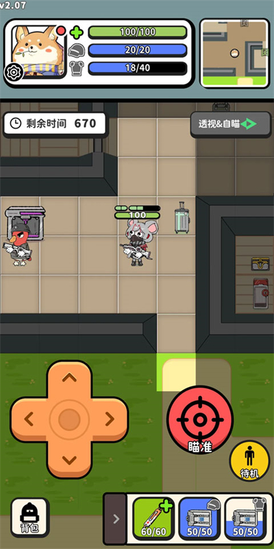 4、查看剩余时间,及时使用底部医疗箱等道具,合理规划行动,完成场景内的对战任务。